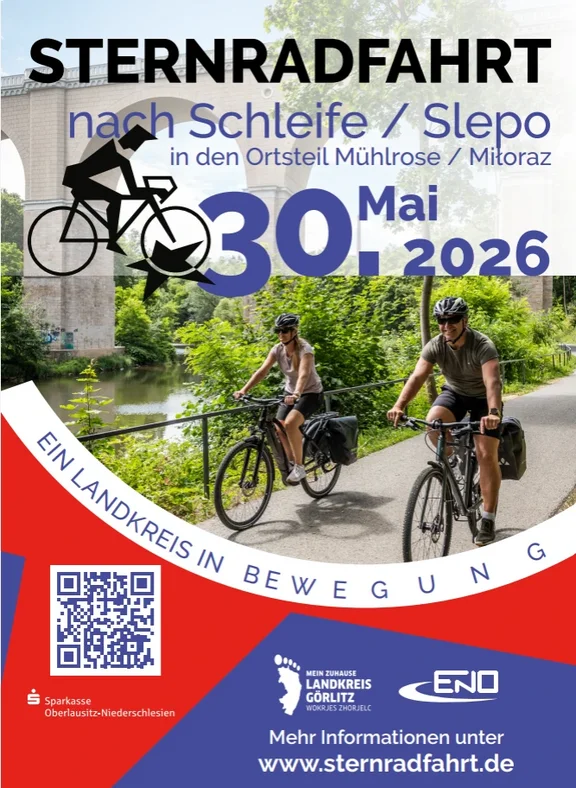 Am 30. Mai 2026 lädt der Landkreis Görlitz zum 23. Mal zur Sternradfahrt ganz in den Norden des Landkreises nach Schleife in den Ortsteil Mühlrose ein.